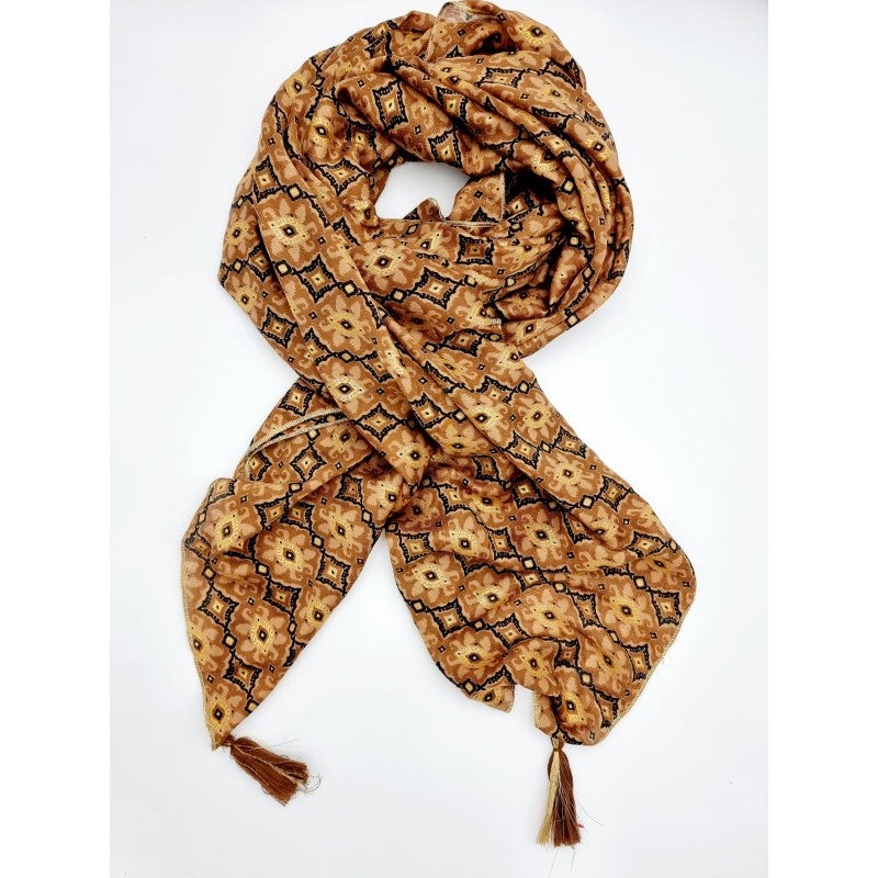 Huivi , kultakuvioilla ja hapsut kulmissa