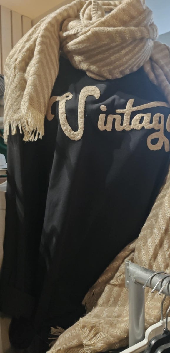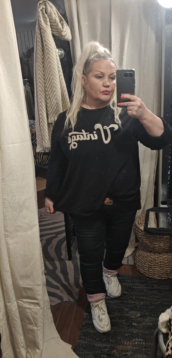 Ohut puuvillapusero VINTAGE tekstillä ,musta .Teksti beige
