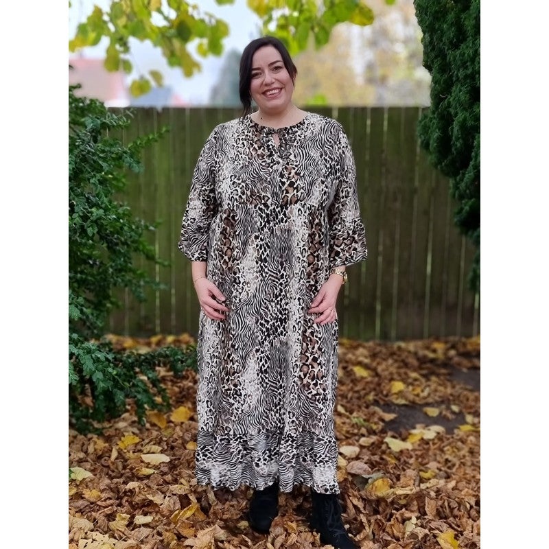 MAXI-mekko PLUS-koko Viskoosi. Ruskea/leopardi