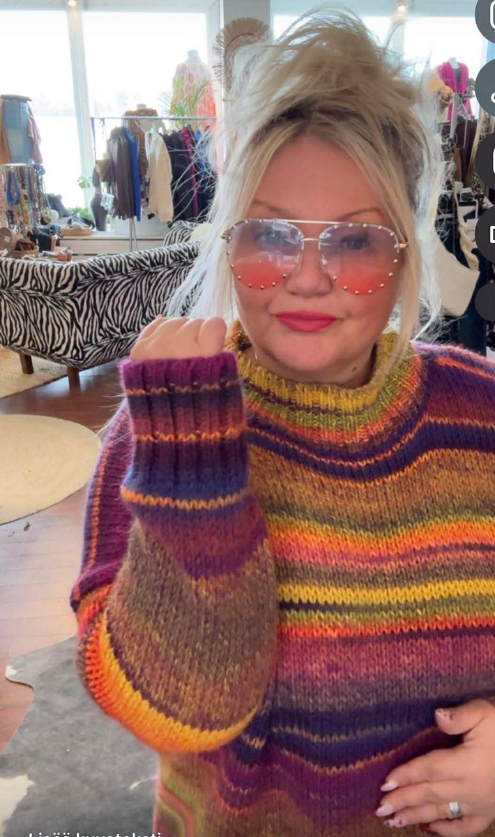 Lämmin villaneule jossa upeat värit ja kiva reilu malli .Ihana vaikka just farkkujen kanssa .